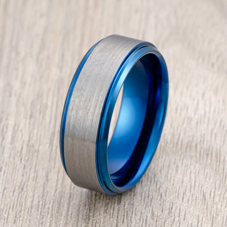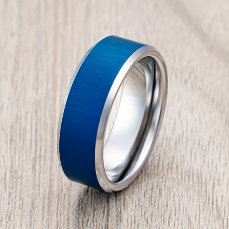 8mm Blue Brushed Tungsten Wedding Band with Polished Edges