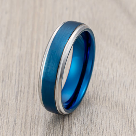 6mm Blue Brushed Tungsten Wedding Band with Polished Edges