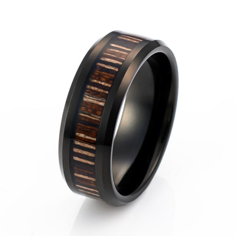 8mm Tungsten Wedding Band Brazilian Tigerwood Inlay