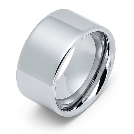 12mm - Tungsten Carbide Men's Flat Top Silver High Polish Ring,