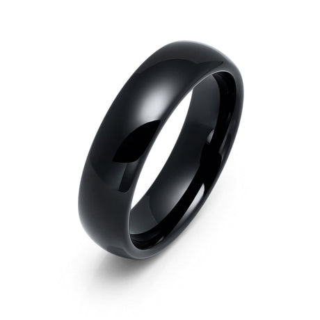 6mm - Mens Black Tungsten Wedding Band, High Polished Dome Shape