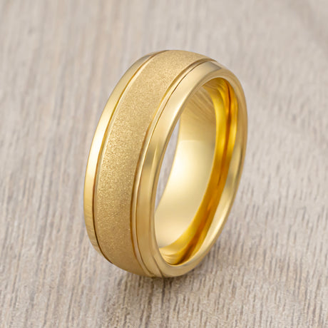 8mm Gold Tungsten Wedding Band Sandblasted Center With Double Groove Ring