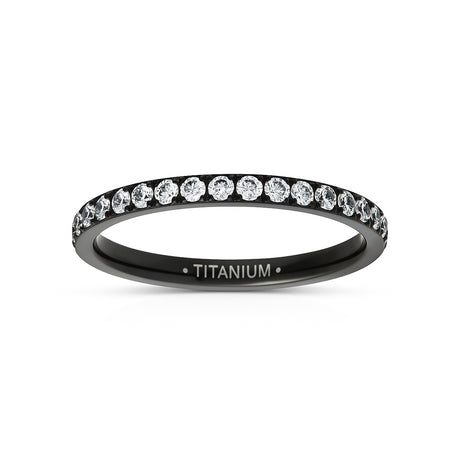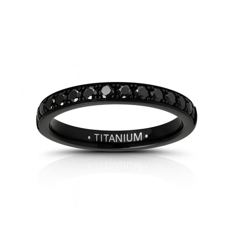 Black Titanium Ring Full Eternity White Cubic Zircon Diamonds 2mm