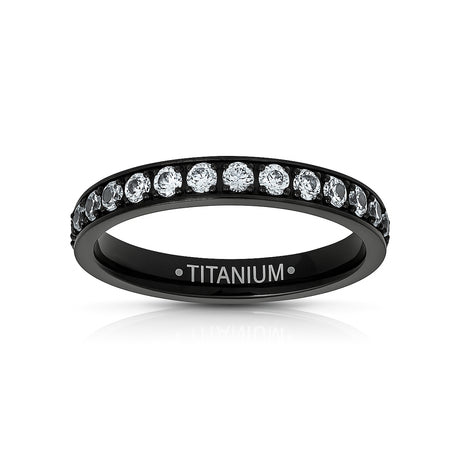 Black Titanium Ring Full Eternity White Cubic Zircon Diamonds 3mm