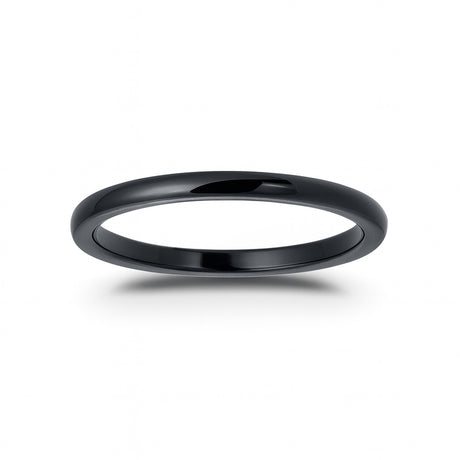 2mm Black Classic Domed High Polish Tungsten Wedding Ring Comfort Fit Band