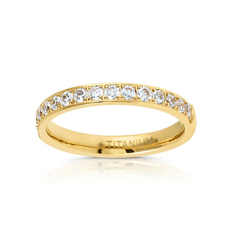 Gold Titanium Ring Half Eternity White Cubic Zircon Diamonds 3mm