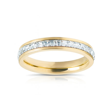 Gold Titanium Ring Eternity Princess Cut Cubic Zircon Diamonds 4mm