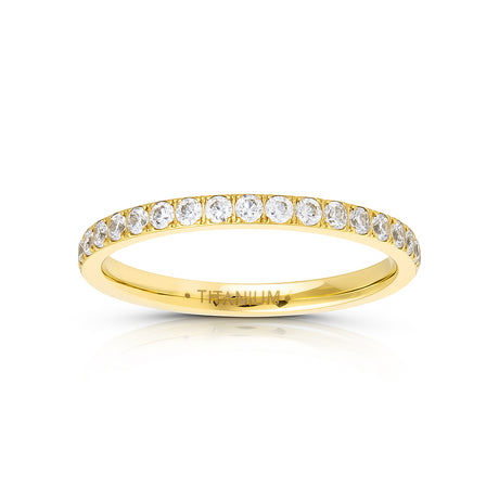 Gold Titanium Ring Full Eternity White Cubic Zircon Diamonds 2mm