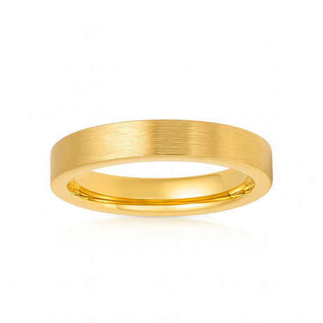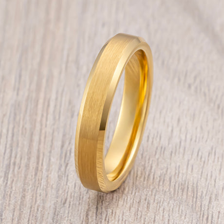 4mm Gold Tungsten Wedding Ring Brushed Finish Beveled Edges Ring